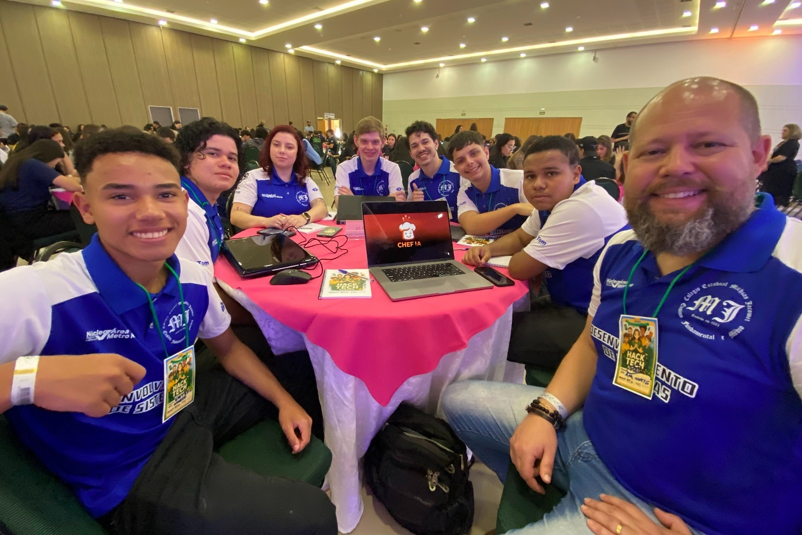 Estudantes do Colégio Estadual Mathias Jacomel, de Pinhais, na Região Metropolitana de Curitiba, estiveram no auditório do Fundepar nesta segunda-feira (17) para apresentar à equipe do Departamento de Nutrição e Alimentação (DNA/CPAE) o projeto “Chef IA”, uma solução criada por eles para reduzir o desperdício de alimentos.