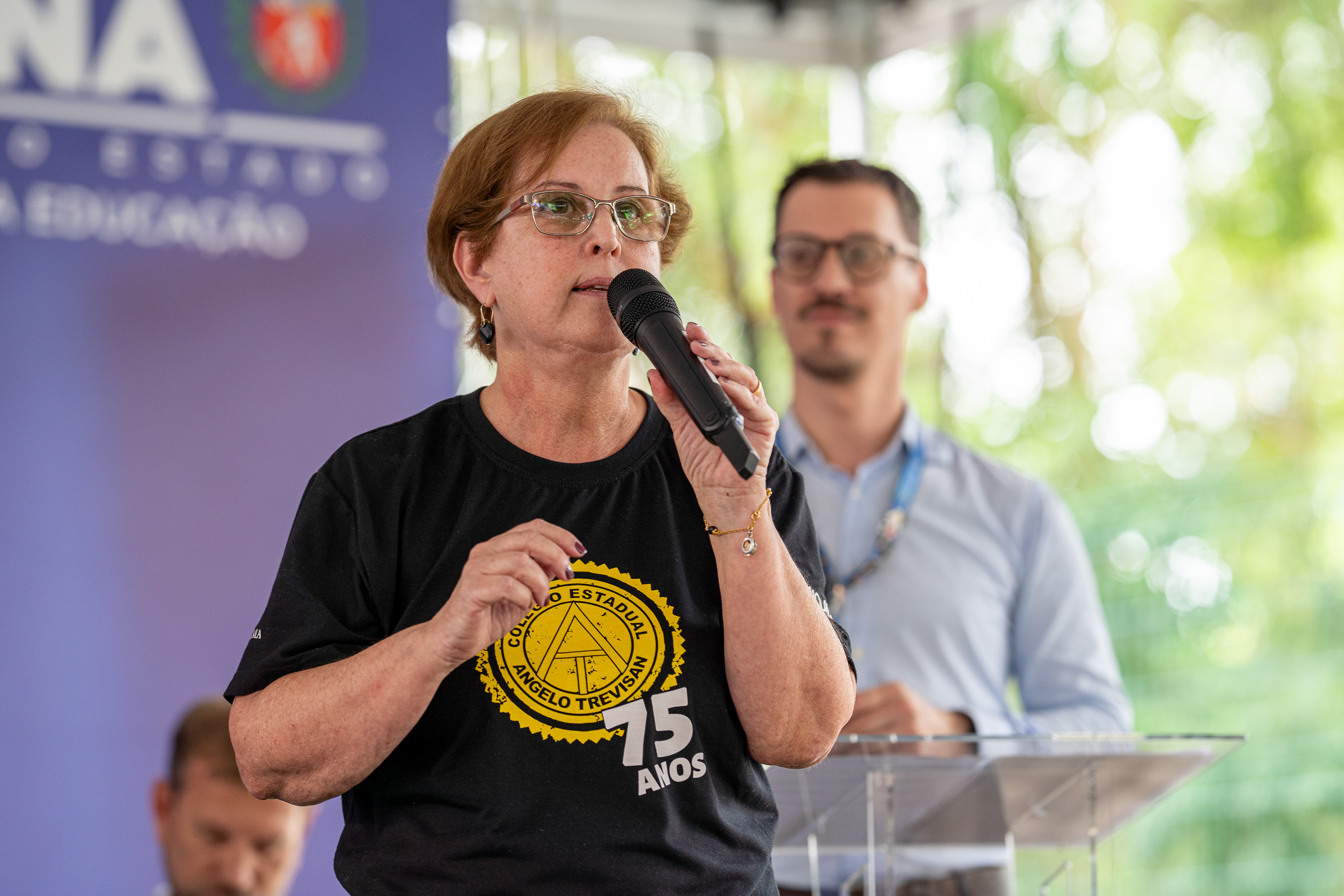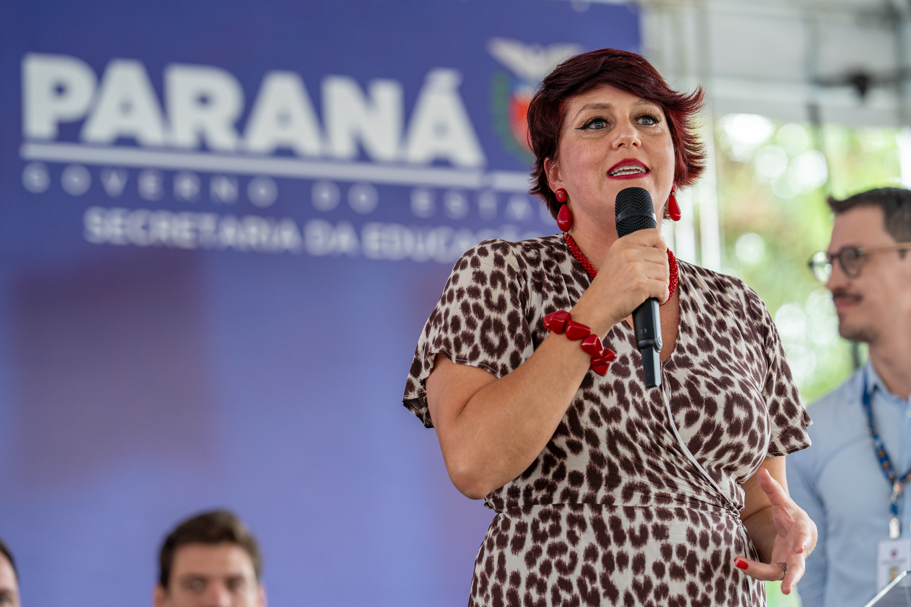 PRESENÇAS – Também participaram da solenidade a diretora de Planejamento e Gestão Escolar da Seed, Graziele Andriola; a chefe do Núcleo Regional de Educação de Curitiba, Laura Patrícia Lopes; a chefe de Gabinete da Seed, Camila Prade Conte; a chefe do Departamento de Obras e Fiscalização do Fundepar, Mariana Júlia Lopes Felkl; a engenheira da Paraná Educação (Preduc), Daisy Fátima Toniolo; o deputado estadual, Luiz Claudio Romanelli (PSD); o vereador Nori Seto.