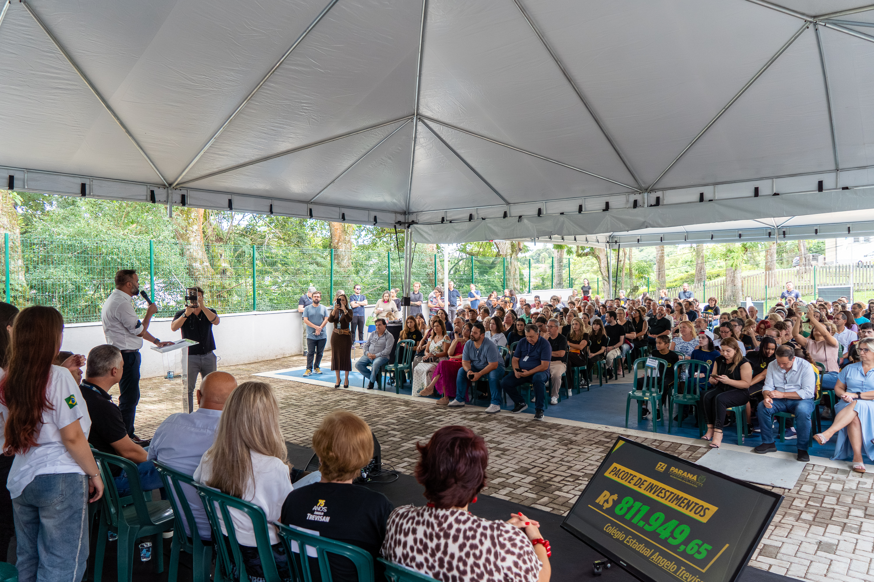 As obras de infraestrutura da segunda sede do Colégio Estadual Ângelo Trevisan, no bairro Cascatinha, em Curitiba, foram oficialmente entregues nesta segunda-feira (12) pelo Governo do Estado em uma solenidade que reuniu, além de representantes da Secretaria de Estado da Educação (Seed-PR), vereadores, deputados estaduais, gestores escolares, professores, pais e alunos da comunidade.