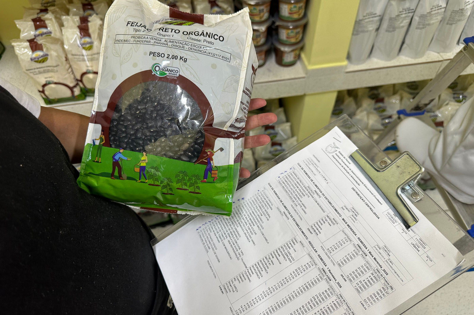 Os gêneros secos são entregues pelos fornecedores na unidade armazenadora do Instituto de Desenvolvimento Rural do Paraná (IDR-PR), no município de Pinhais. Neste local, os produtos são separados, pesados e acondicionados de acordo com o padrão de armazenagem e identificados por escolas, seguindo as guias de remessa emitidas pelo Fundepar, para então serem distribuídos.