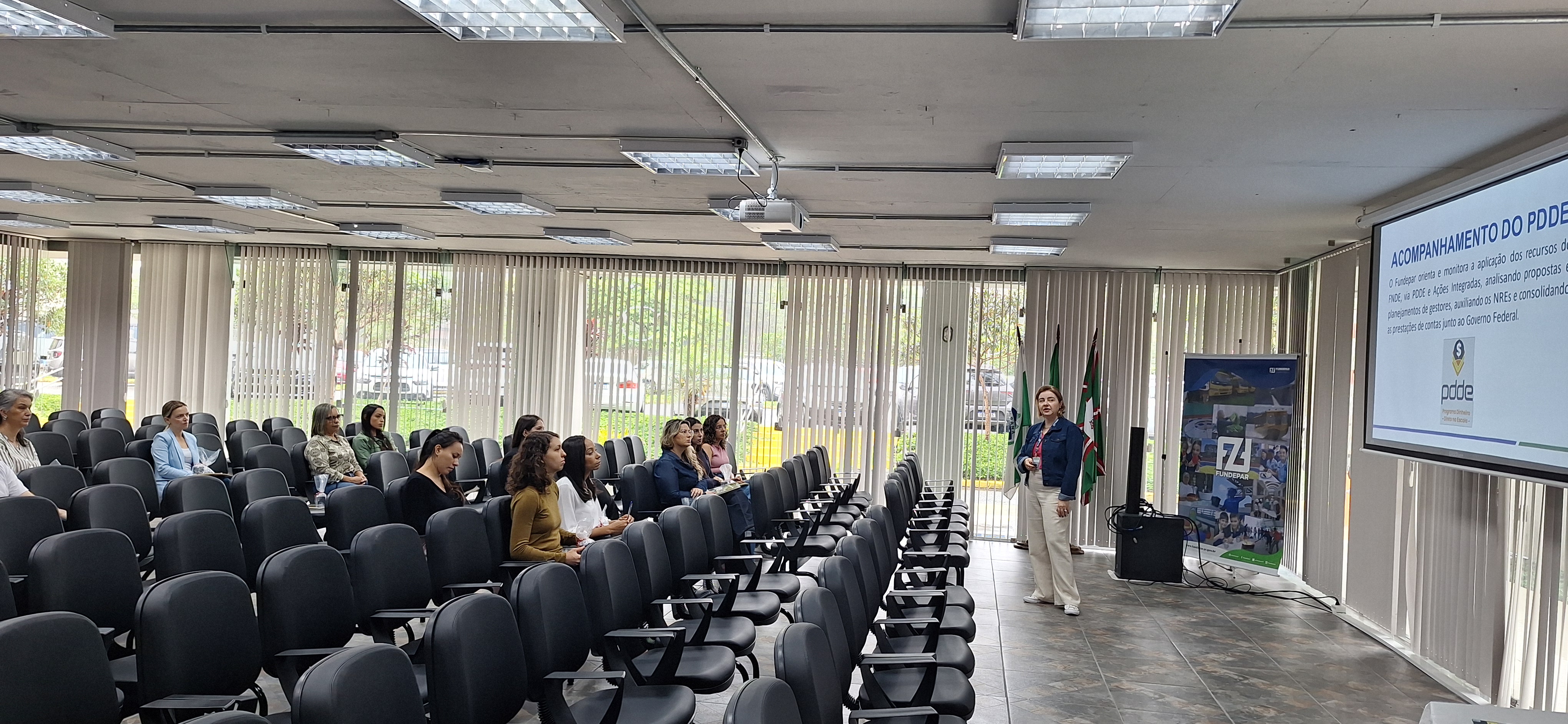 A Coordenadora de Recursos Humanos, Fabiana Hass Maia, conduziu a programação e iniciou destacando os princípios que norteiam o trabalho desempenhado no serviço público. Os participantes conheceram a estrutura organizacional do Fundepar e receberam orientações sobre a atuação do Instituto no âmbito da Secretaria de Estado da Educação, voltada a garantir ambientes escolares adequados e serviços de qualidade para os estudantes da rede pública estadual de ensino.