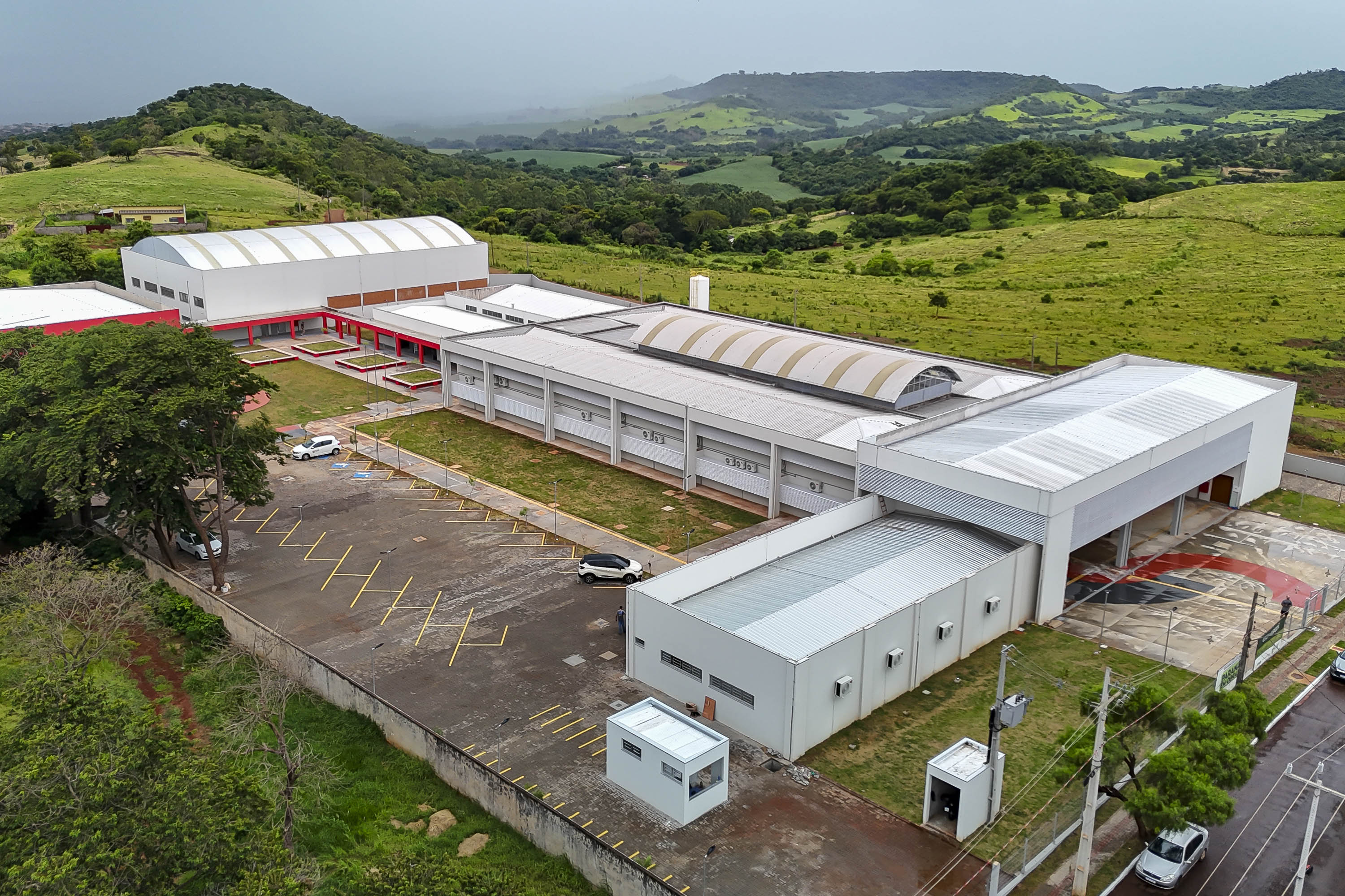 ESTRUTURA – Os projetos dos Centros Estaduais de Educação Profissional são fornecidos pelo Fundo Nacional de Desenvolvimento da Educação (FNDE) de maneira padronizada, com quatro blocos: administrativo, auditório e didático; cozinha e refeitório; ginásio coberto; e laboratórios especiais. Conforme a topografia do terreno, foram feitas adequações na implantação.