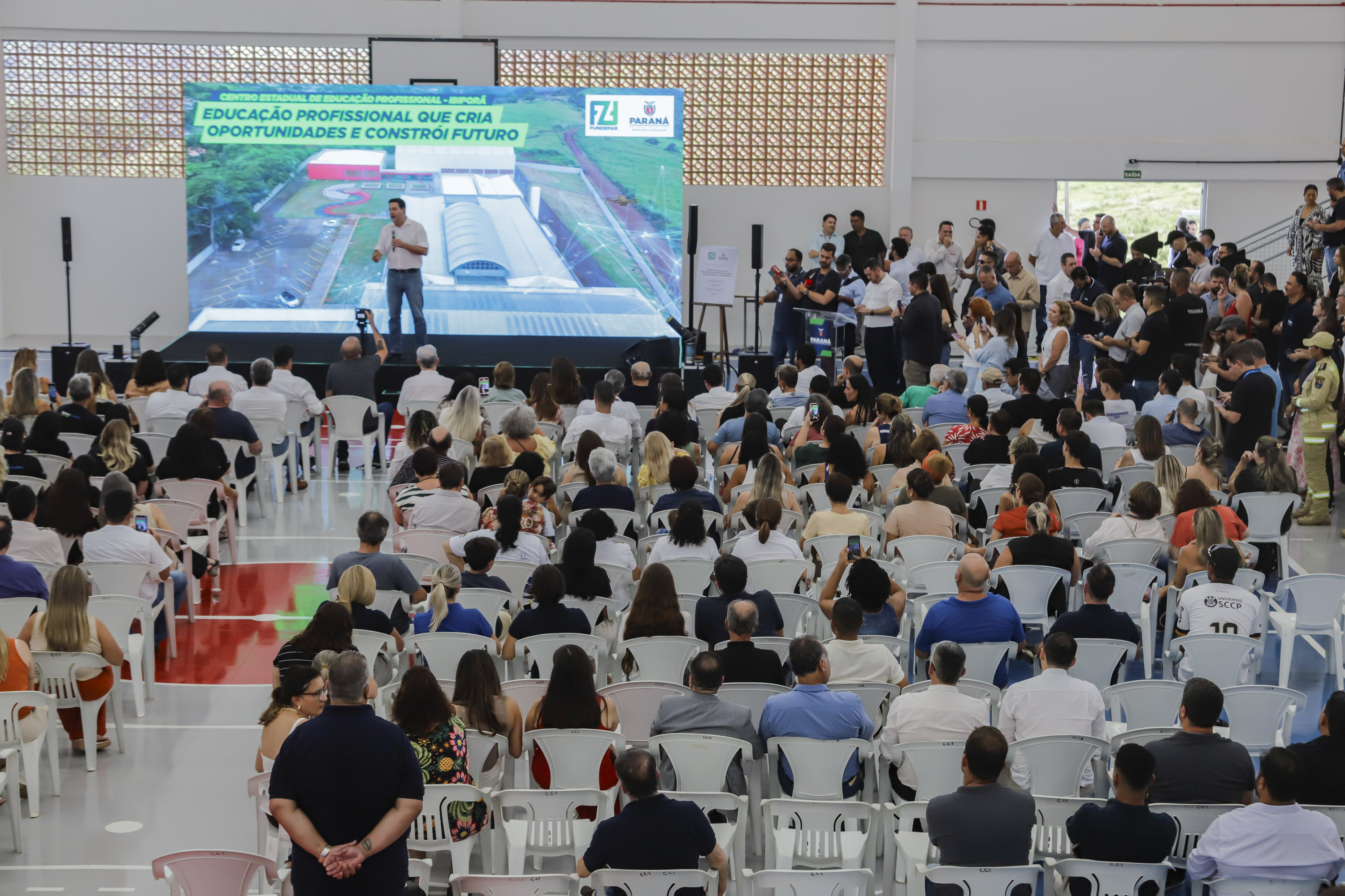 “Essa é uma obra que estava paralisada antes de eu assumir como governador. Retomamos todas e hoje estamos entregando uma estrutura de educação profissionalizante moderna para a população. Isso é dar oportunidade para os jovens que, além de estudar, vão aprender uma profissão aqui dentro também. É um colégio grande, com 12 salas de aula e que vai atender muitos alunos de Ibiporã e região”, destacou Ratinho Junior.